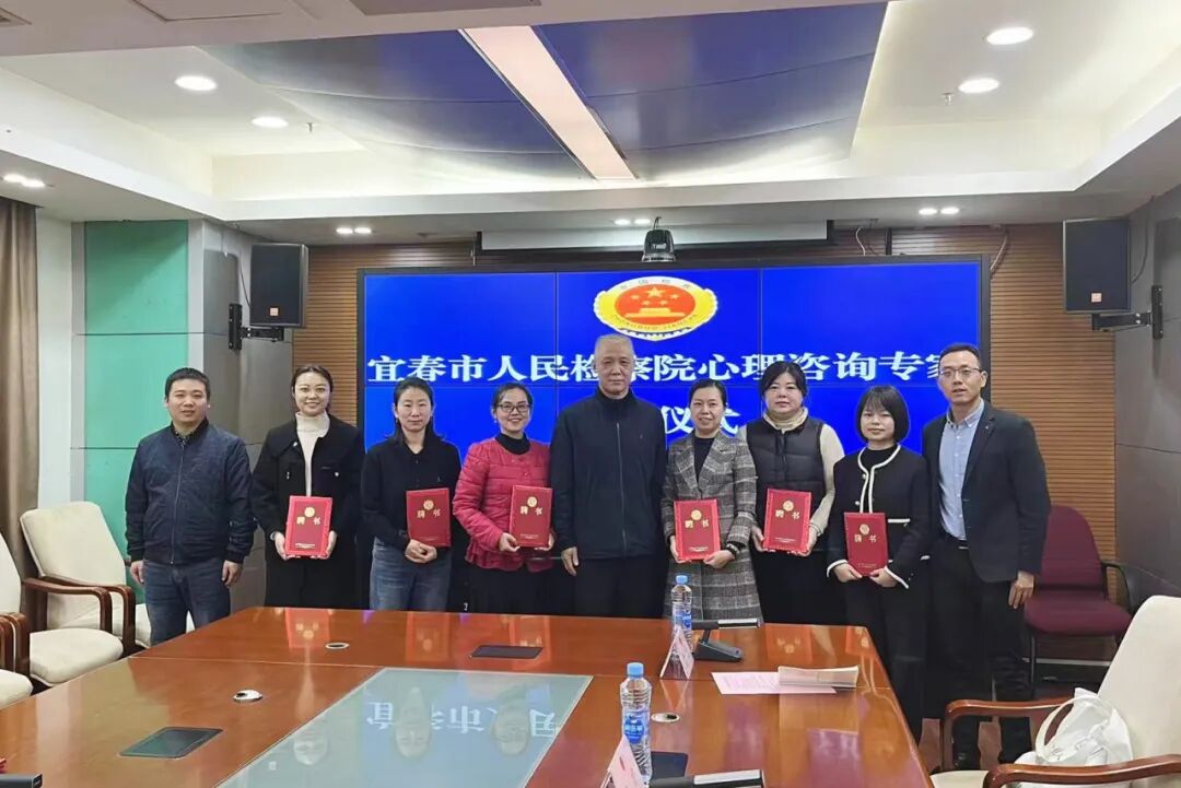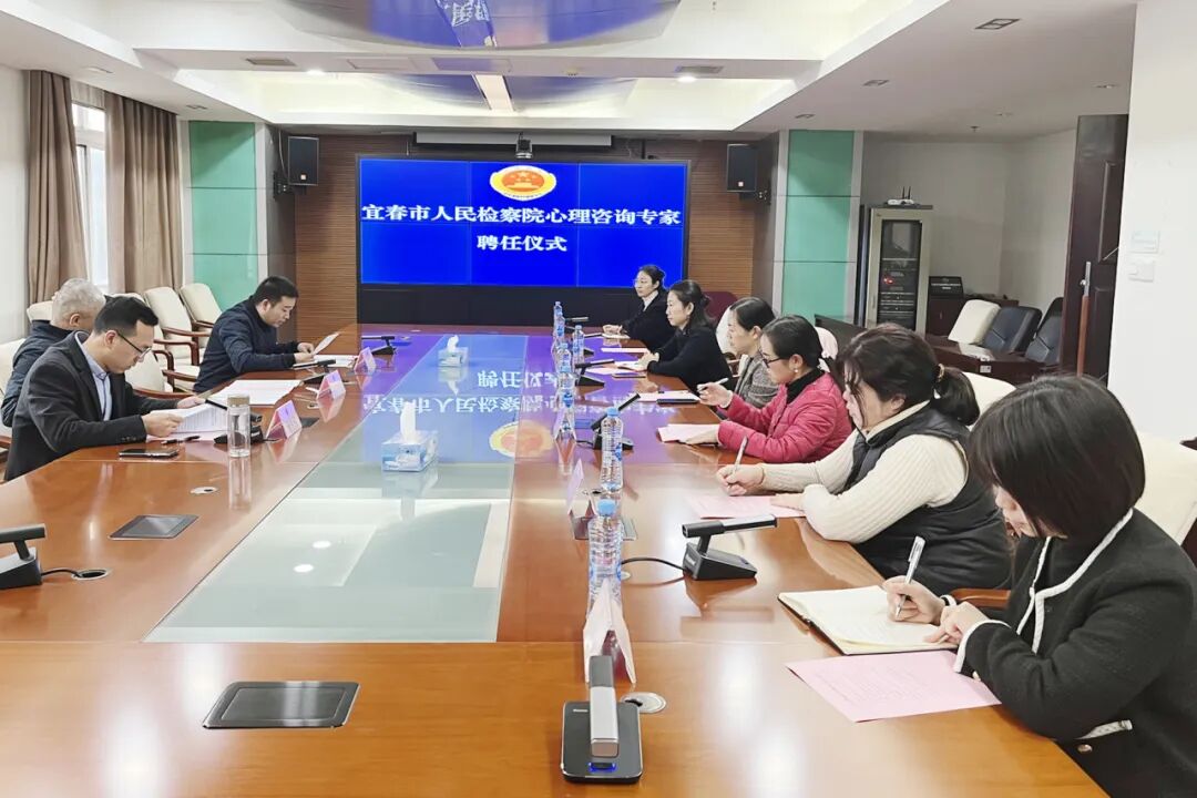 近日,宜春市人民检察院为首批“入库”的八名心理咨询专家举行聘任仪式,邀请她们走进检察机关,开展座谈交流、参观12309检察服务中心,实地接触了解检察工作。首批入选“心理咨询专家库”的八人均取得心理咨询师证书,既有社会志愿人士,又有各行各业人员,均具有较为丰富的心理咨询工作经验和群众工作经验,是公益服务、志愿服务的典型代表。