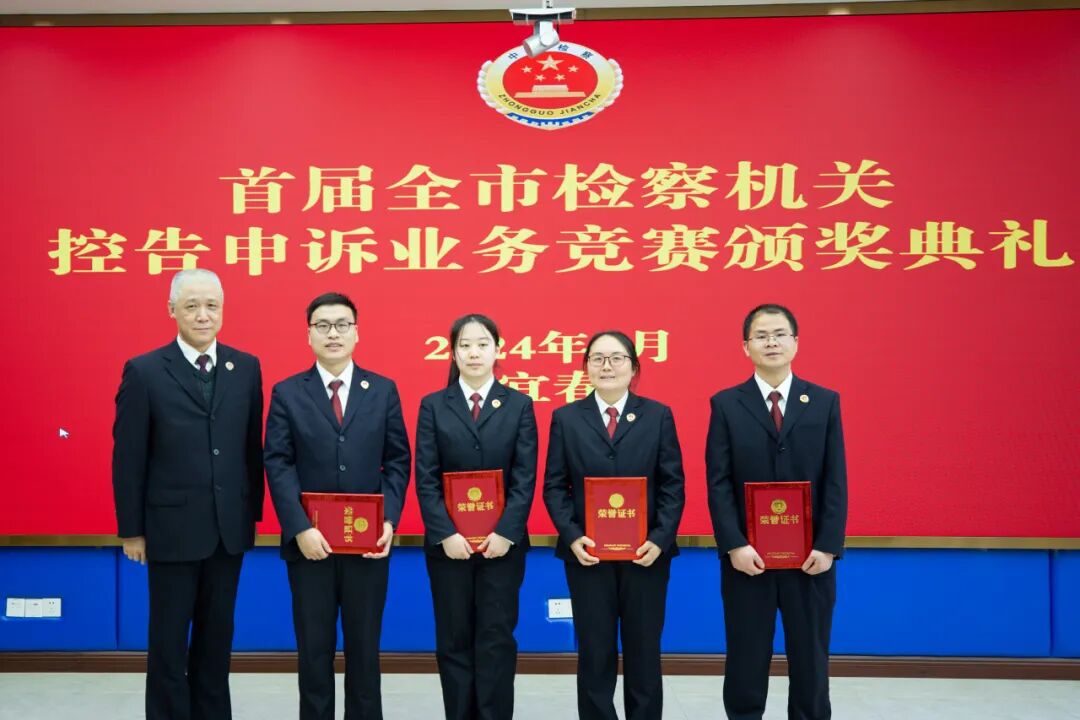 为进一步提升全市检察机关控告申诉检察干警岗位素能,推进控告申诉检察队伍建设,2024年2月29日至3月1日,宜春市人民检察院举办首届全市检察机关控告申诉业务竞赛。市检察院党组副书记、副检察长孙疆,党组成员、副检察长王小龙以及检委会专职委员钟文凤出席颁奖典礼,并为获奖单位和个人颁奖。