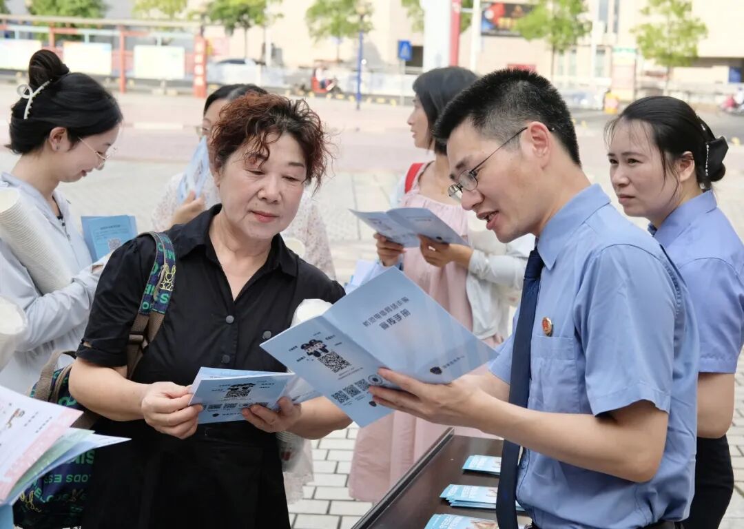 检察干警通过悬挂横幅、摆放宣传展板、发放宣传资料、现场讲解反诈知识等多种方式进行宣传,用通俗易懂的语言与群众面对面、生动形象地讲解诈骗案例,介绍防诈注意事项,提醒群众在日常生活中警惕诈骗套路陷阱,不盲从、不轻信、不转账,提高人民群众的反诈意识和拒骗能力。
