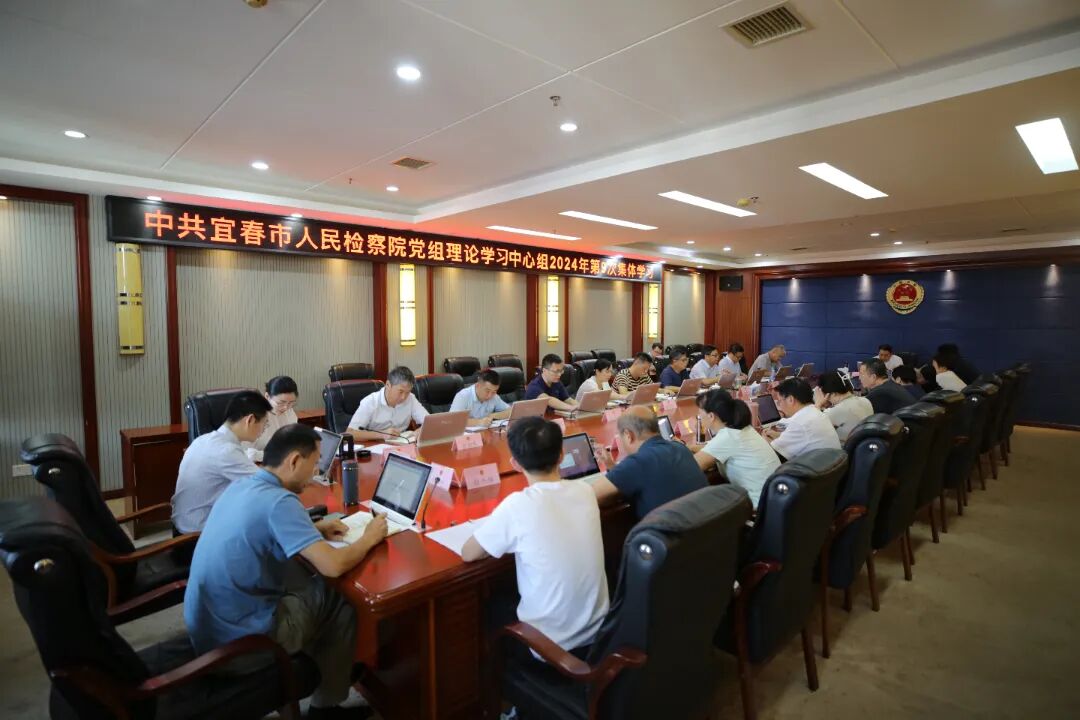 近日,宜春市检察院召开党组理论学习中心组(扩大)会议,深入学习贯彻党的二十届三中全会精神。市院党组书记、检察长张乐主持并讲话,党组理论学习中心组成员、各部门主要负责人和青年干警代表参加学习。