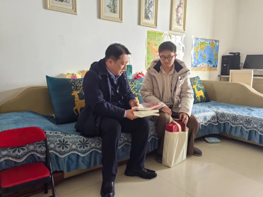 在青苗学子彭永福、张子豪家中,张乐与他们亲切交谈,仔细询问他们的日常生活状况、学习情况和未来规划,同时勉励他们要立大志、明大德、成大才、担大任,全面提升自身综合能力水平,努力实现自己的人生价值、社会价值。