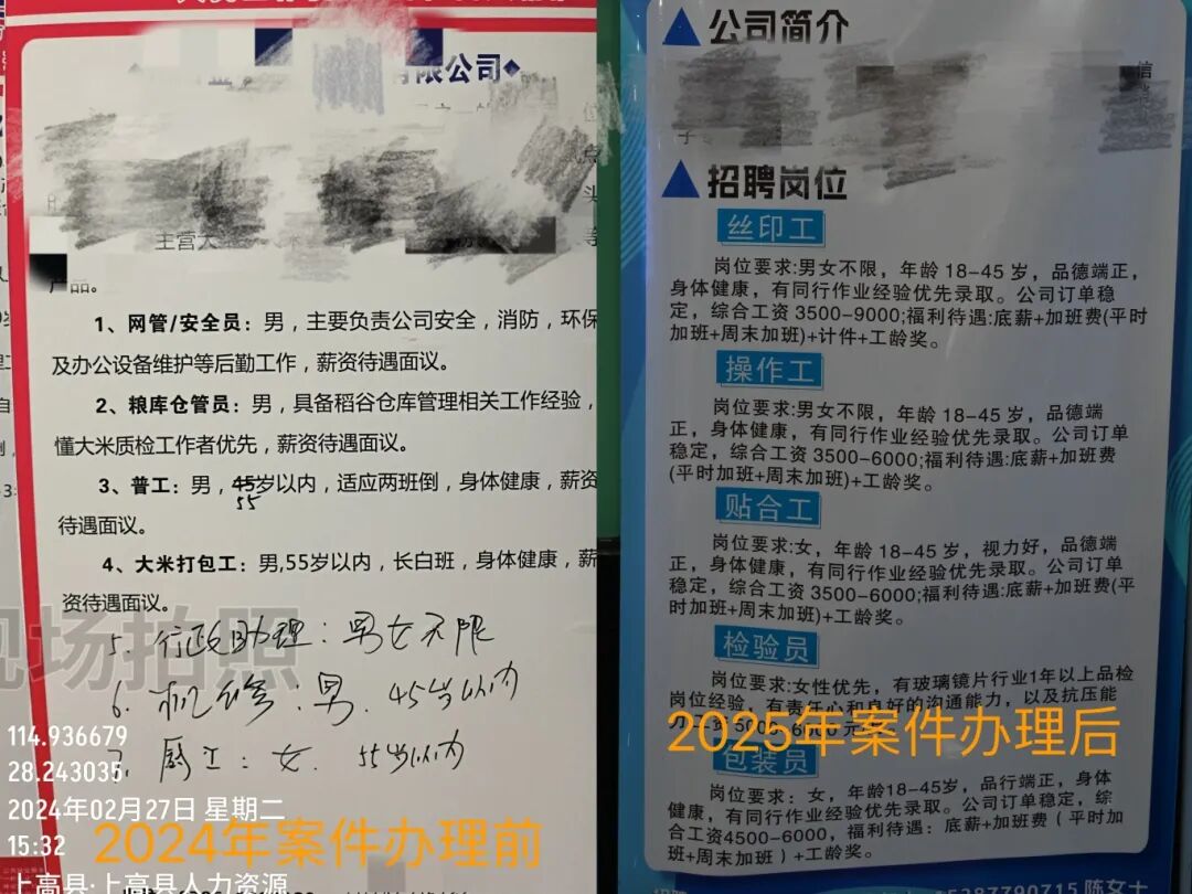 当时,最高人民检察院部署在2024年2月至12月开展检护民生专项行动,聚焦劳动者、消费者、妇女等重点人群保护。发现妇女就业歧视线索后,我院结合实际决定开展“妇女合法权益保护”检察公益诉讼专项活动,守护民生。我和同事立即对线索进行全面调查,梳理同期其他线下、线上的招聘和招聘信息、公告12000余条,发现50余个工种或者岗位违法设定仅限招录男性、限招录已婚已育妇女等就业性别歧视条件,人社部门未依据《中华人民共和国妇女权益保障法》《中华人民共和国就业促进法》等法律法规的规定对人力资源市场存在的侵害妇女就业权益的情形进行有效监管。